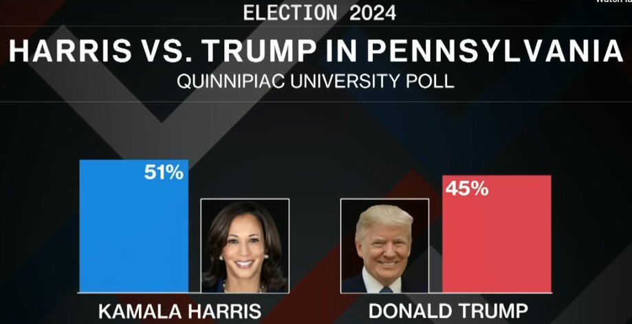 Harris Leads Trump 51 to 45 in Pennsylvania as of Sep 18, 2024 in a Quinnipiac Poll