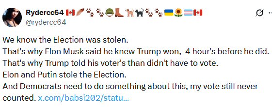 Musk’s statement has such specific claims of what the 2024 election outcome would have been without his help that it lends credence to engaging in data manipulation and election rigging to put Trump back in the White House, especially when added to other suspicious comments and evidence.