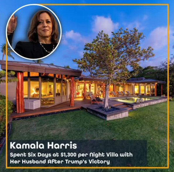 Instead of ‘Fighting’ to save our country by ordering recounts as recommended, Harris retreated to a 7 million dollar estate in Hawaii @ $1,300 per night. By failing to order recounts in Swing States, she played right into the hands of Trump & Republicans, guaranteeing Trump would be sworn in with no investigations.