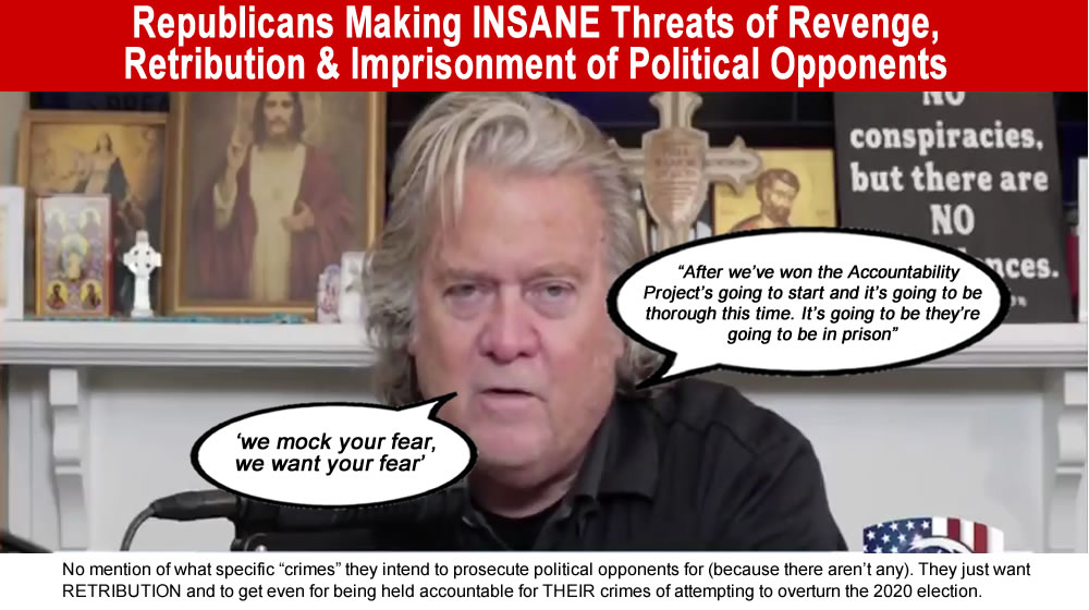 On March 28, 2024 Steve Bannon stated: “After we’ve won, the Accountability Project’s going to start and it’s going to be thorough this time. It’s going to be they’re going to be in prison”.