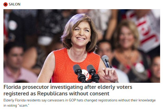 “Commentators have repeatedly accused the Republican Party of applying deceptive methods in order to win elections. The New Republic alleged that Republican Party political campaigns have a history of applying “voter intimidation techniques, more direct threats of violence, foreign disinformation, and super PAC and dark money skullduggery” as strategies, citing the possible sabotage of Vietnam War peace talks during the 1968 election; the Watergate scandal during the 1972 election; the 1980 October Surprise theory; the tactics of Lee Atwater during the 1988 election; the “butterfly ballots”, actions of Katherine Harris, Brooks Brothers riot, and Bush v. Gore Supreme Court case during the 2000 election; the 2002 New Hampshire Senate election phone jamming scandal; and the swiftboating of John Kerry during the 2004 election. Truthout cited the Volusia error during the 2000 election; voter roll purges during the 2000 and 2004 elections (in Florida and Ohio, respectively); false information about voting logistics by election boards controlled by Republicans; voter intimidation; and voter ID laws. Truthout also cited “voter irregularities” in Ohio during the 2004 election involving a Republican-connected company SMARTech, and also noted that Anonymous claimed without evidence that Karl Rove unsuccessfully attempted to use Mitt Romney’s ORCA get-out-the-vote system to rig the 2012 election in Ohio in a similar fashion as alleged to have occurred in 2004″.