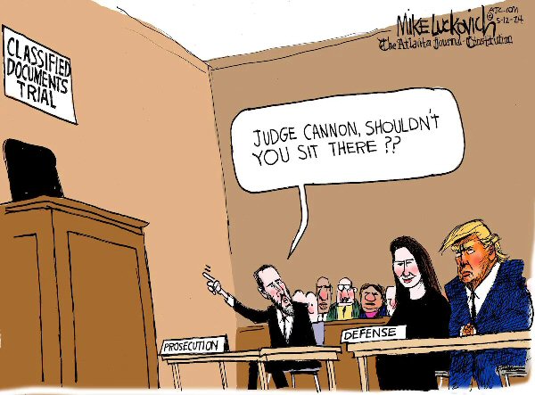 Shortly thereafter, on an opinion gone rogue—complete with a love note and a wink from her SCOTUS daddy Clarence Thomas—Judge Aileen Cannon, after months of stalling the documents case, tossed it altogether. Because naturally, stealing classified documents from the National Archives, lying about having them, then refusing to return them—until the FBI had to raid your house—is an official duty for a president, right?